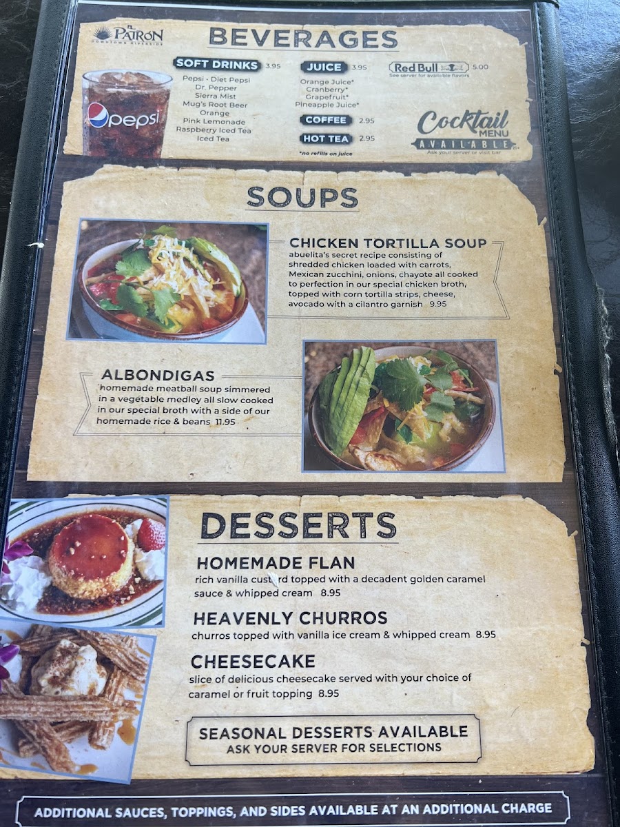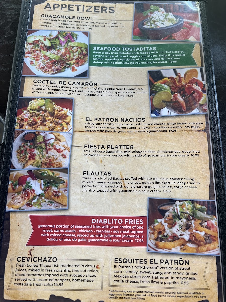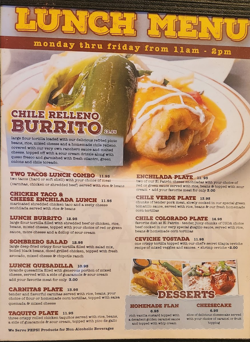The kids are certainly not left out at El Patrón, with a dedicated menu featuring favorites like the Red Cheese Enchilada and Cheese Quesadilla, both priced at just $12.99. You’ll find high-quality dishes that cater to younger palates without sacrificing flavor or satisfaction.